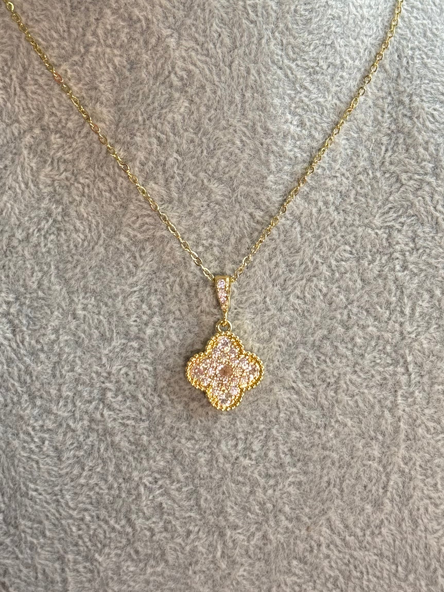 Golden Clover Zircon Necklace